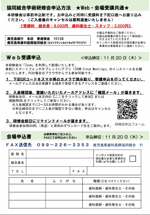 受講料:歯科医師協同組合員 8,000円