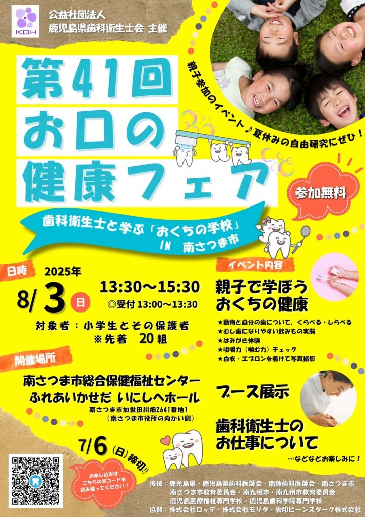 8月3日(日) 南さつま市総合福祉保健センター(いにしへホール)にて、第41回 お口の健康フェア 歯科衛生士と学ぶ「おくちの学校」を開催しました。